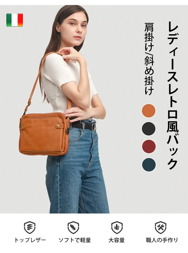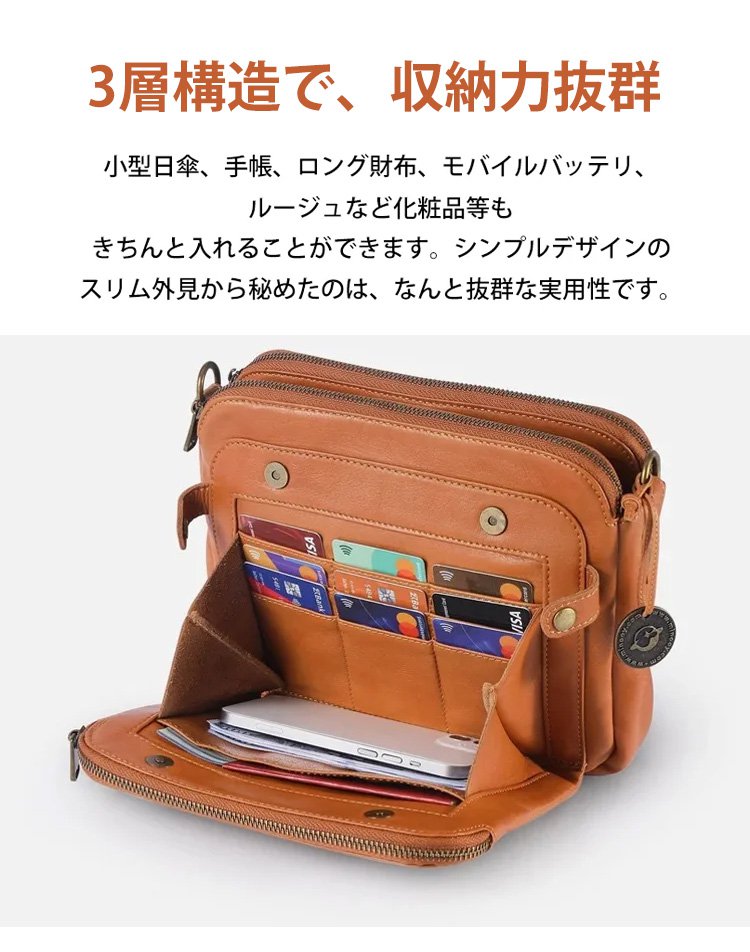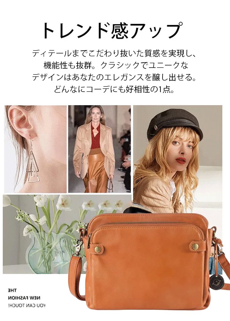 防犯機能付きショルダーバッグ。多ポケットで大容量、物を整然と収納でき、タブレットや日傘も入ります!