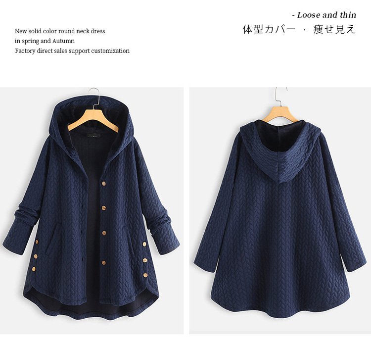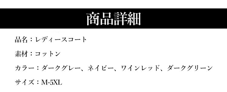【レディースコート】ルーズなシルエット 天然100%綿 サイトポケット付き 通気性よい ハンドステッチ