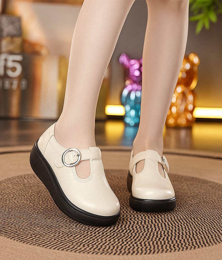 マジックテープ厚底本革レザーシューズ