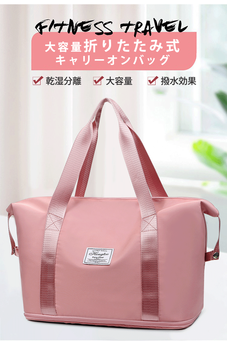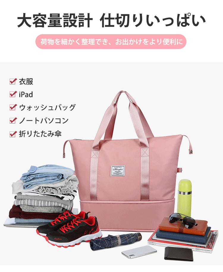 乾湿分離、大容量、肩掛けも手提げもできる!仕切りが多く収納力抜群!撥水オックスフォード使用、柔らかでしっかり、旅行やジム、通勤など最適~お出かけが楽々!