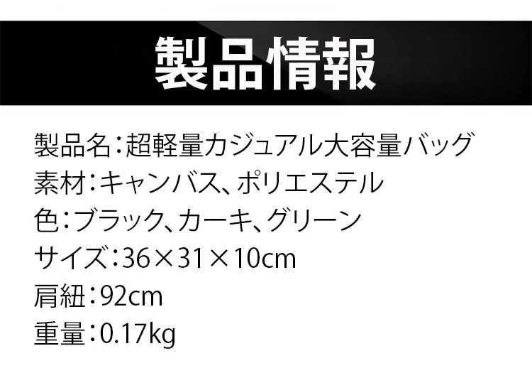 超軽量カジュアル大容量バッグ