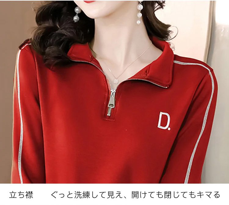 立ち襟ハーフジップスウェット