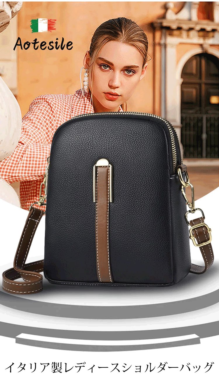 イタリア製の牛革を使用した、拡大容量のレディースショルダーバッグ。軽くてスタイリッシュで、仕切り付きで安心。充実したポケットに化粧品、スマホ、財布などをすっきり収納でき、取り出しやすく紛失しにくい上質なレザー仕様です。