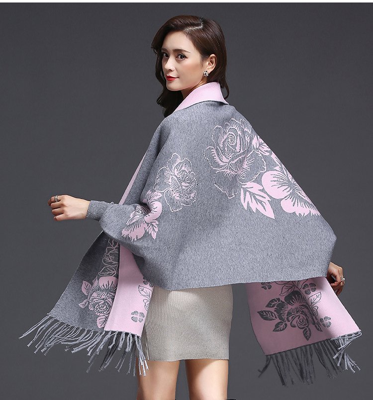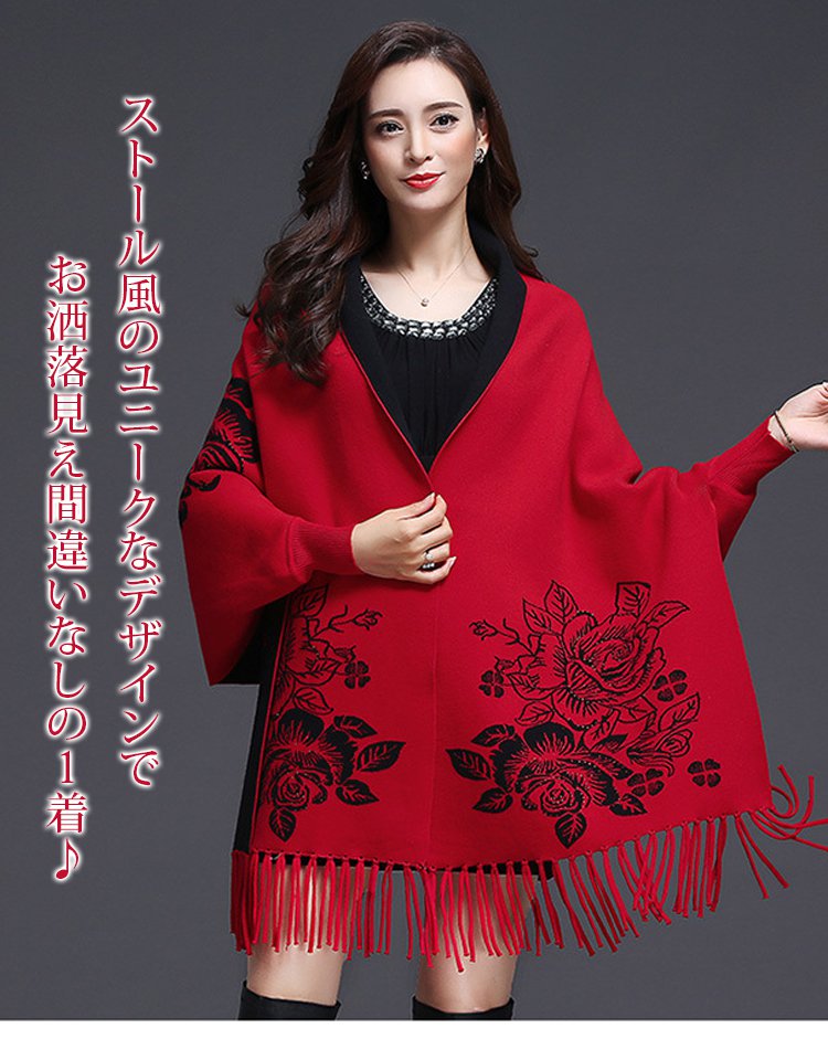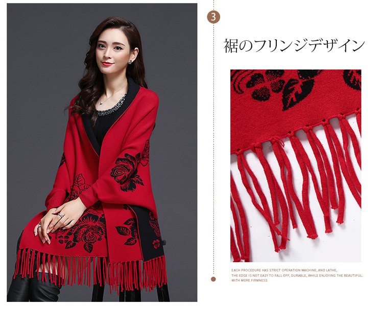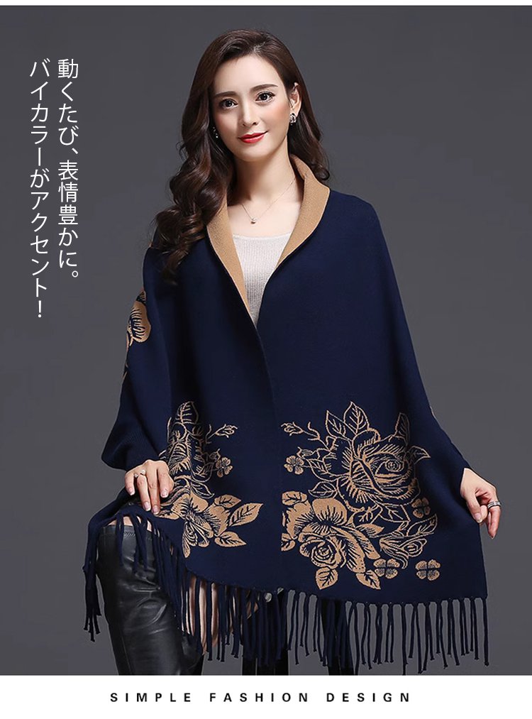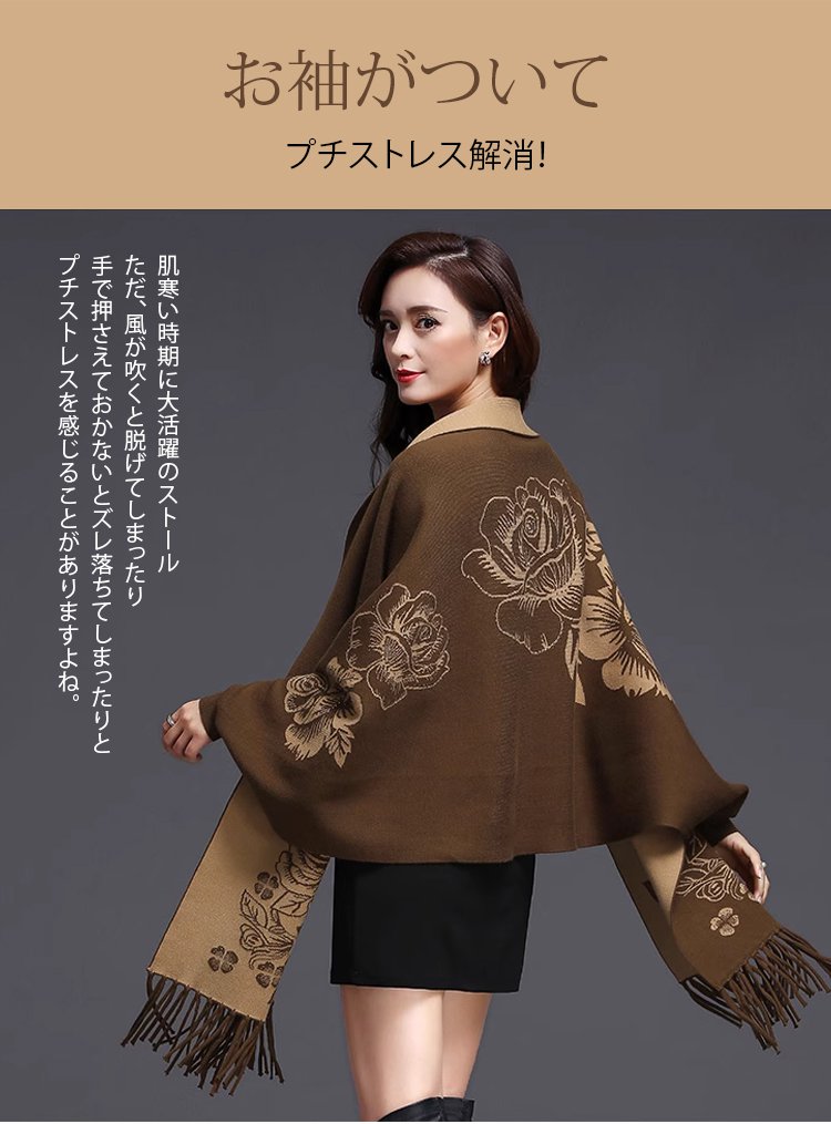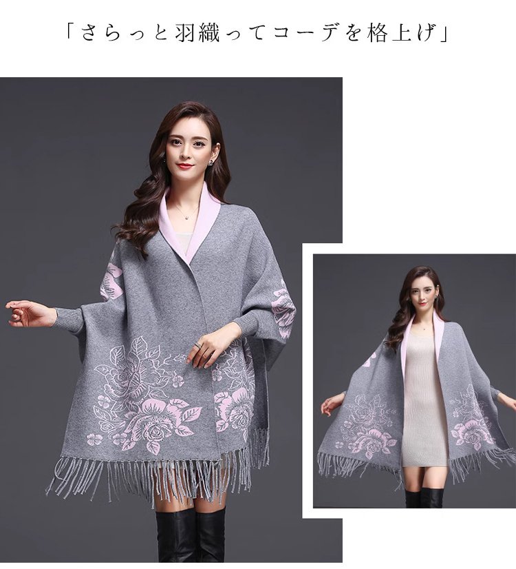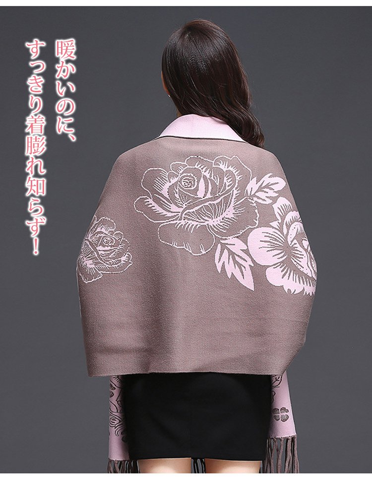 リバーシブルストール風カーディガン カシミヤ100%、両面使える、上品でエレガント おしゃれで暖かい!女性らしい魅力と可愛さを演出!快適で痩せ見えてくれる!