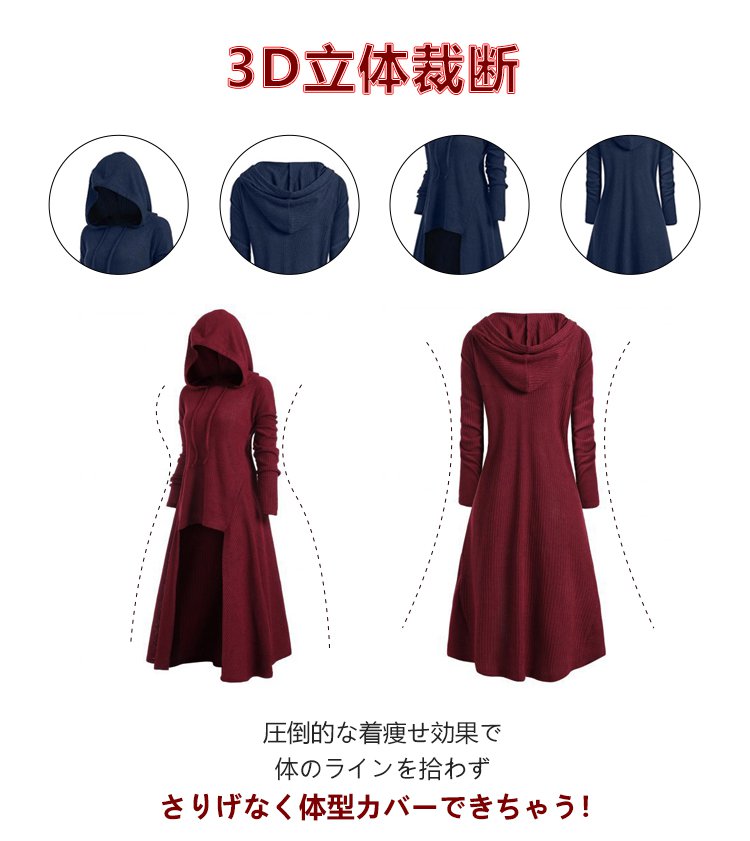 【フード付きニットワンピース】3D立体裁断 コットン生地 しなやかで柔らかくて、滑らかな肌触り!