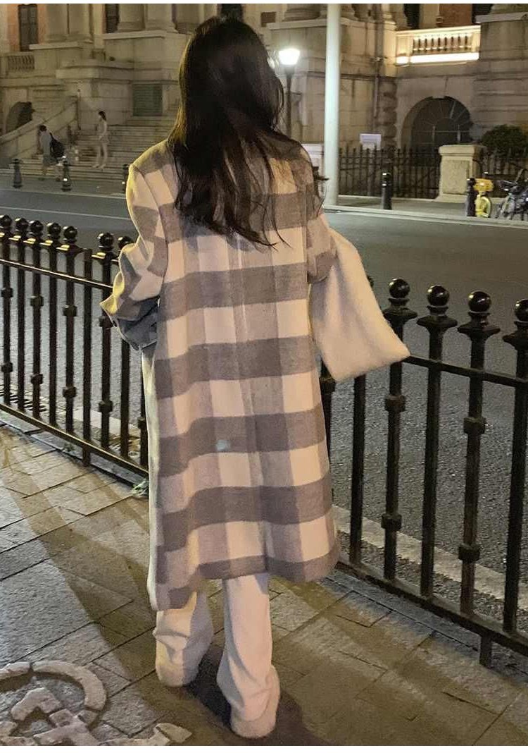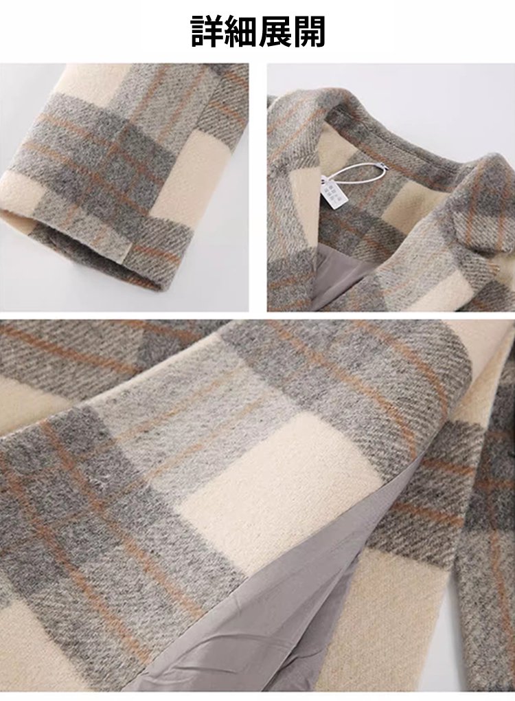 チェック柄ダブルブレストコート