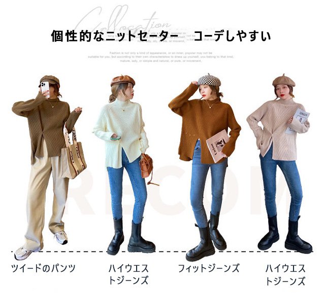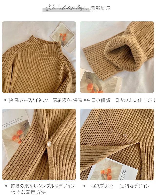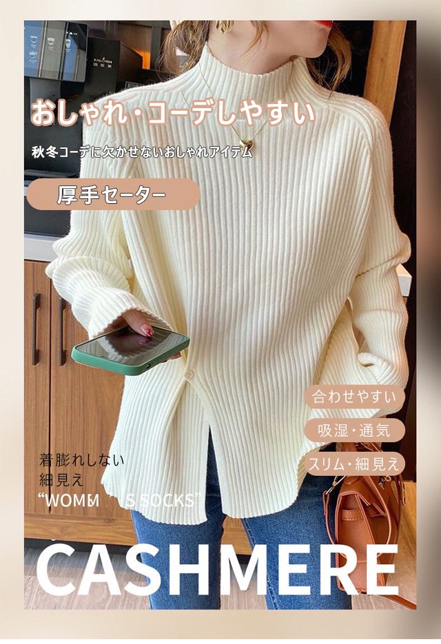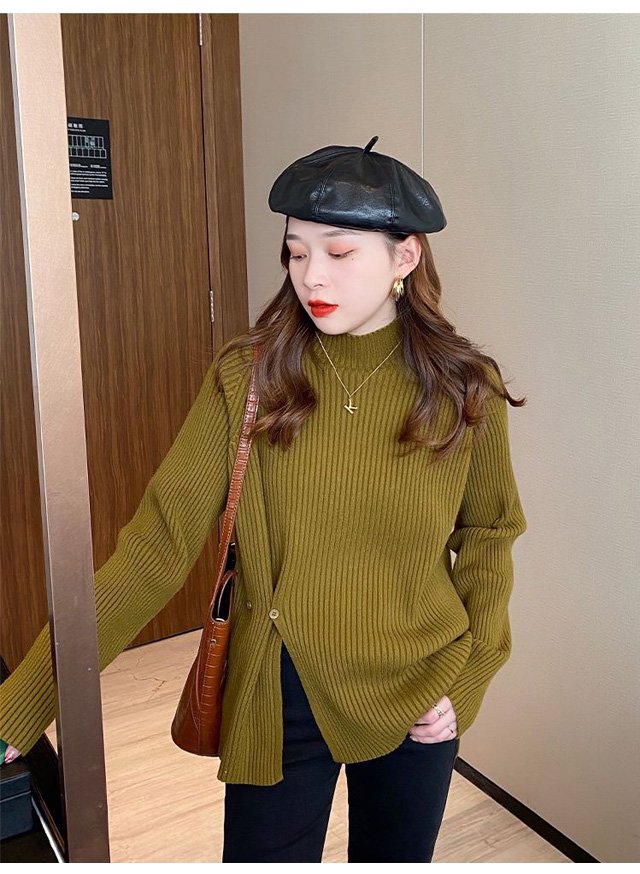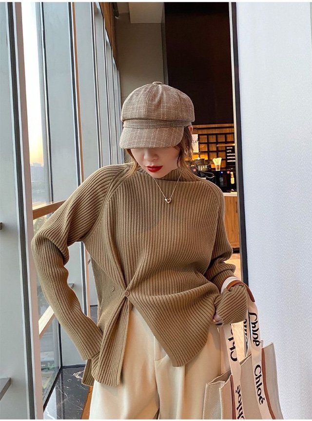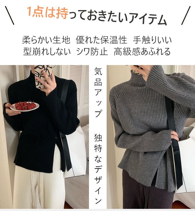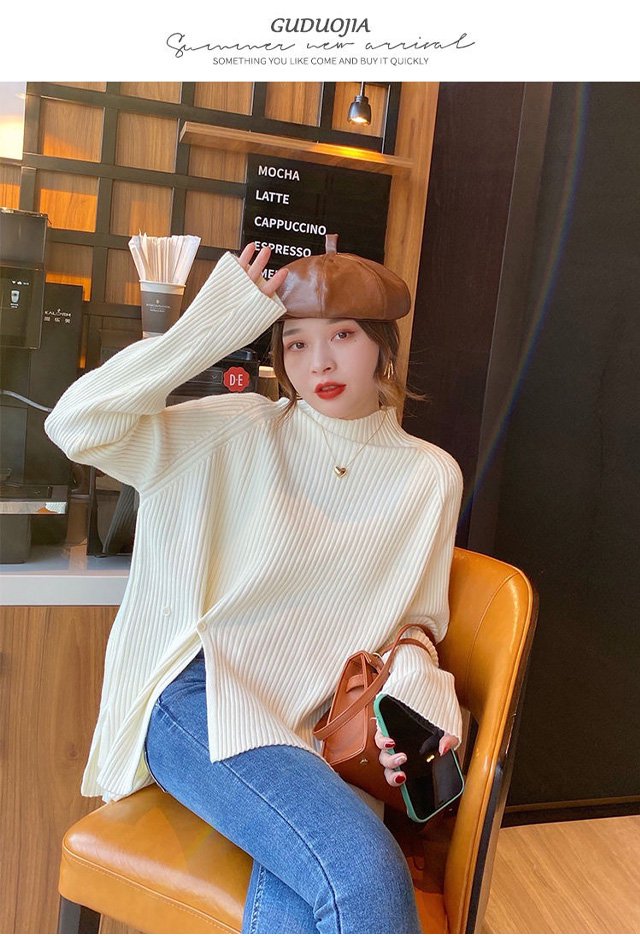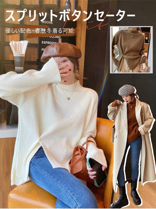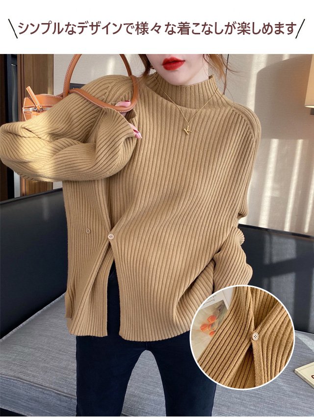 ハーフハイネックスプリット ボタンセーター