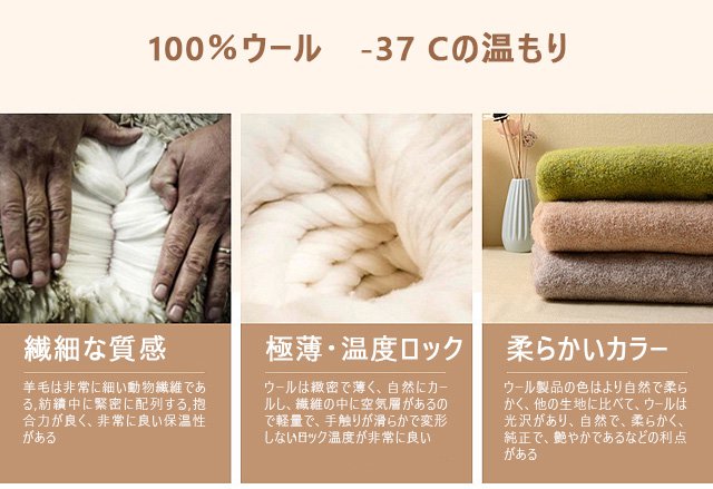 100%ウ一ル    -37 Cの温もり!弹力・ふんわりの毛玉防止 生地、肌触りの心地よさふわふわな越毛裏地