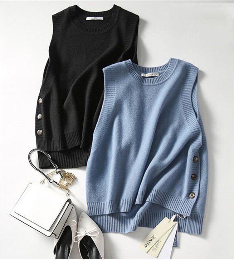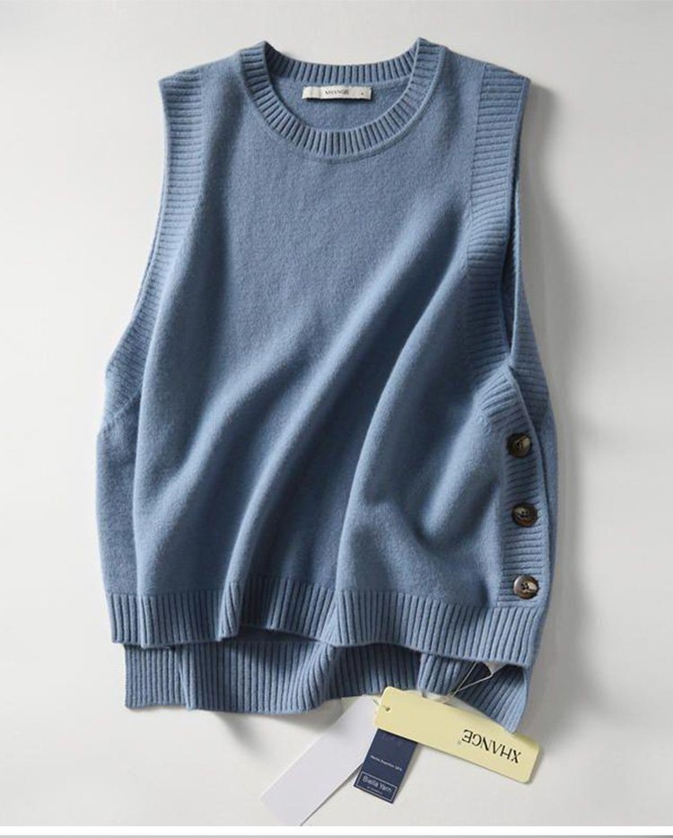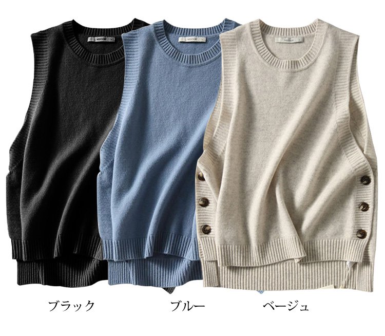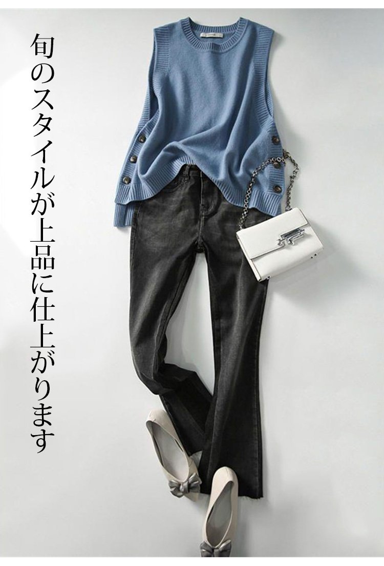 【ノースリーブニット】ベーシックカラーでコーディネートに取り入れやすく、カジュアルにも綺麗めにもスタイリングすることが出来ます。