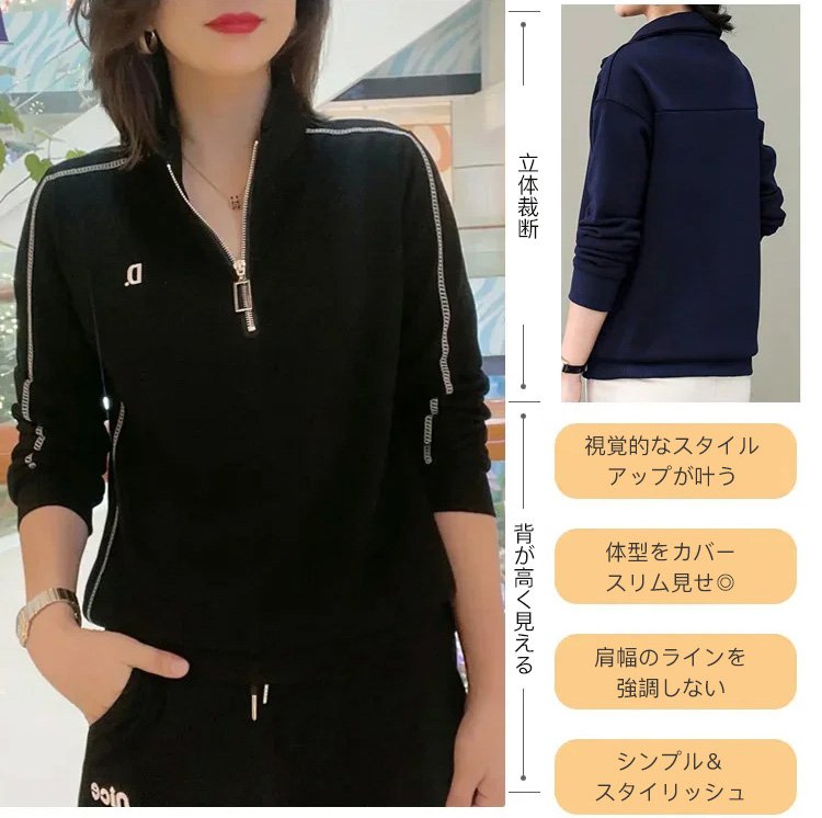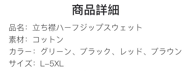 立ち襟ハーフジップスウェット