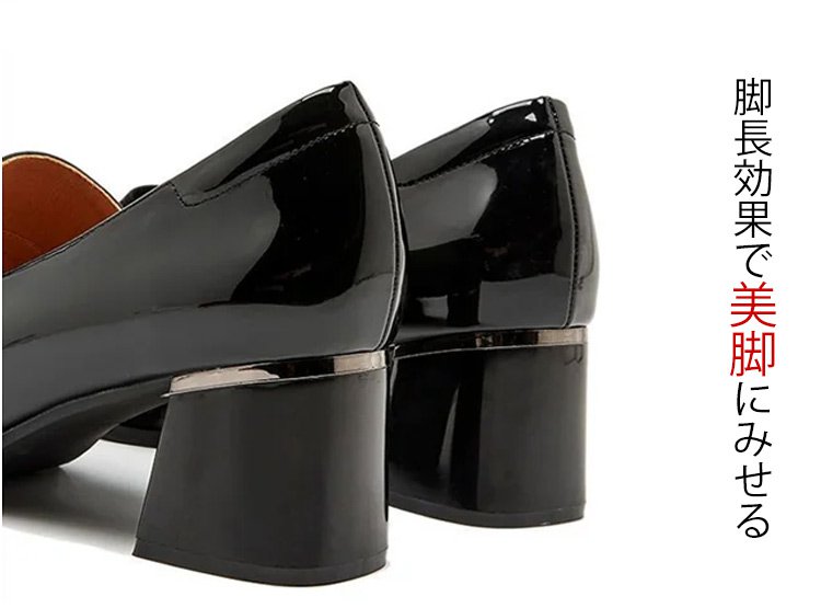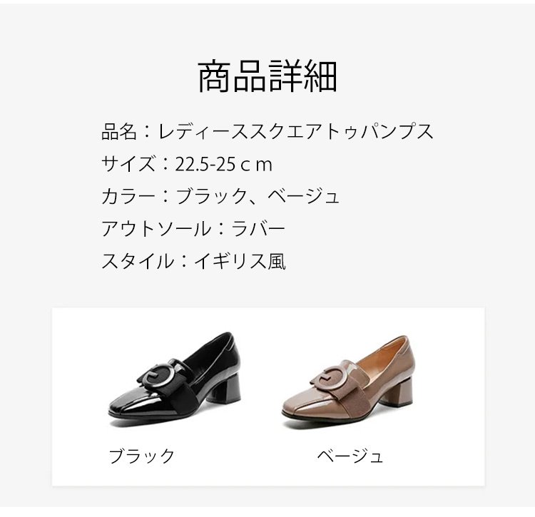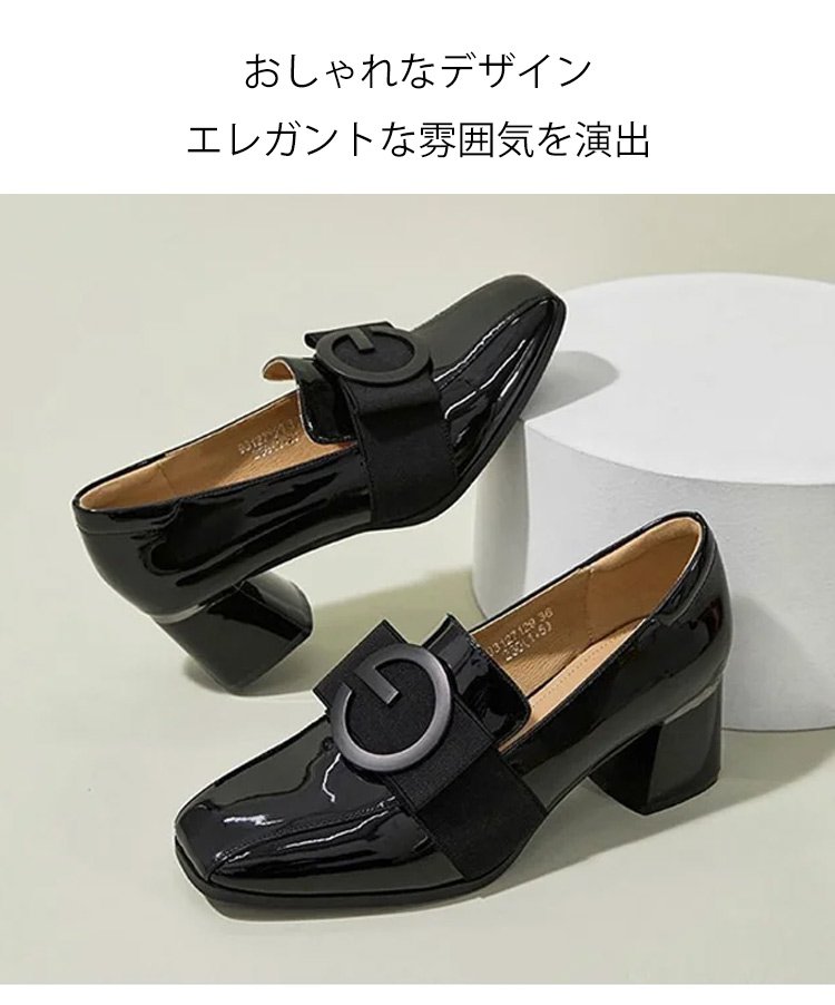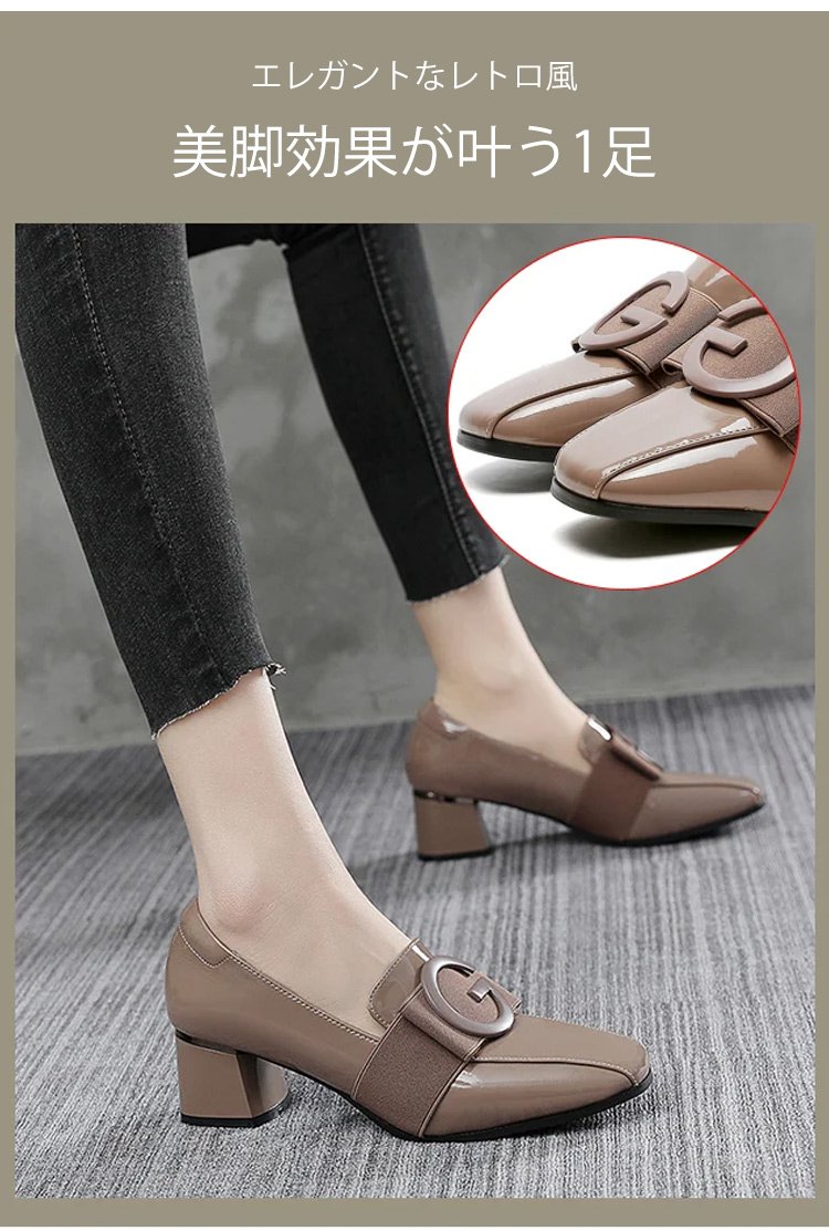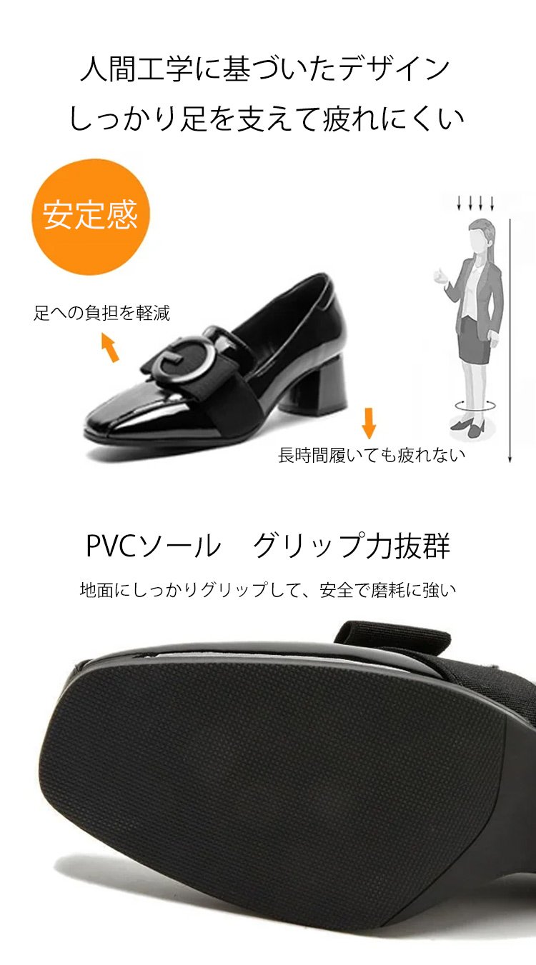レディーススクエアトゥチャンキーヒールパンプス