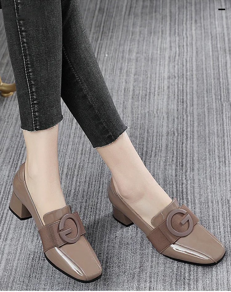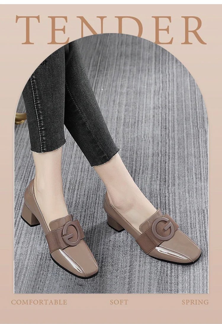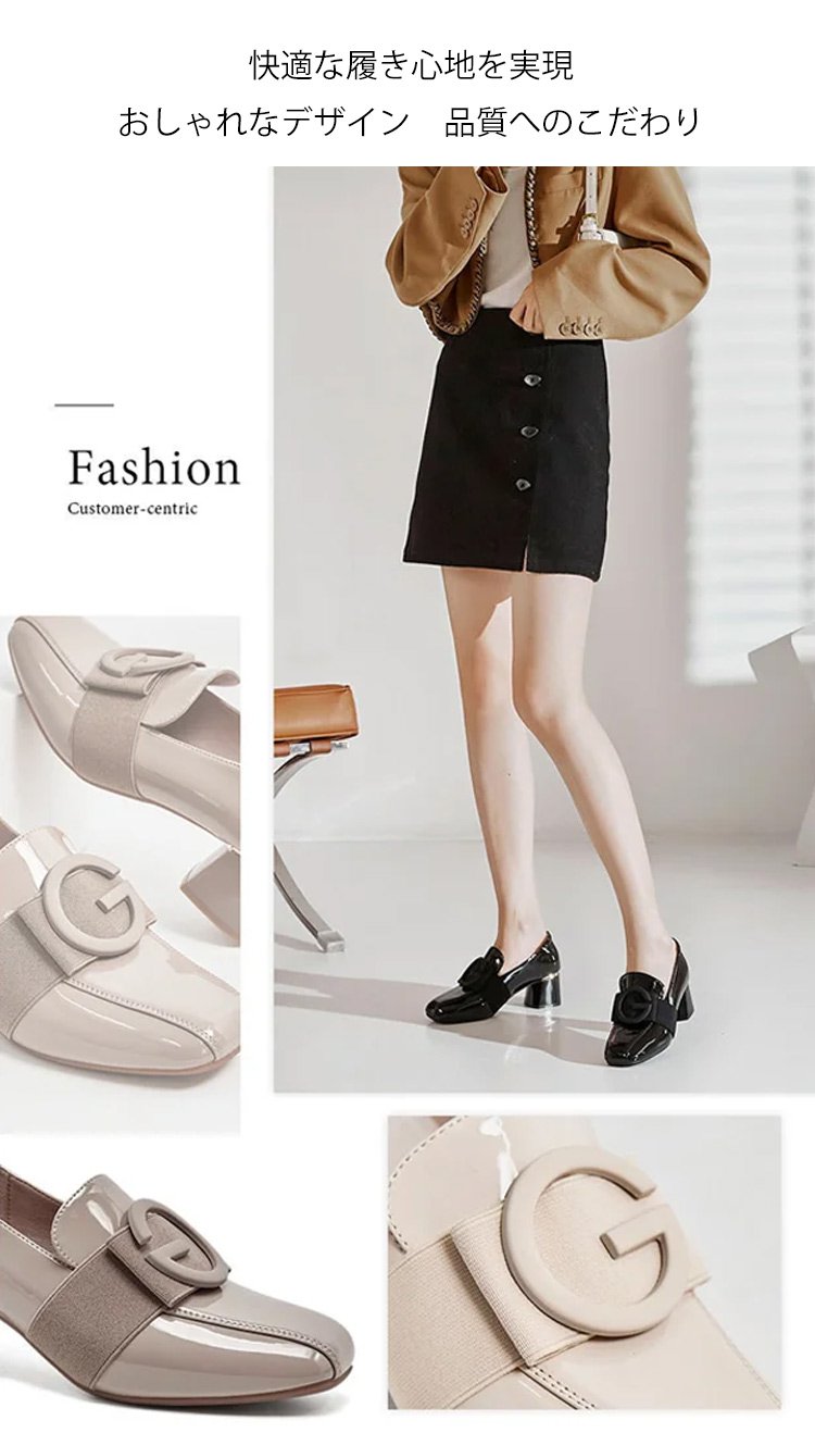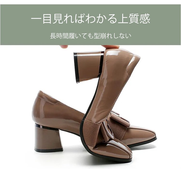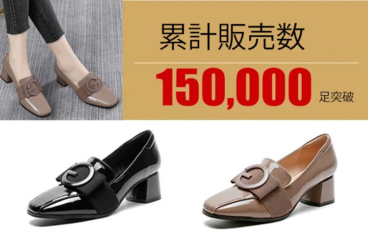 レディーススクエアトゥチャンキーヒールパンプス
